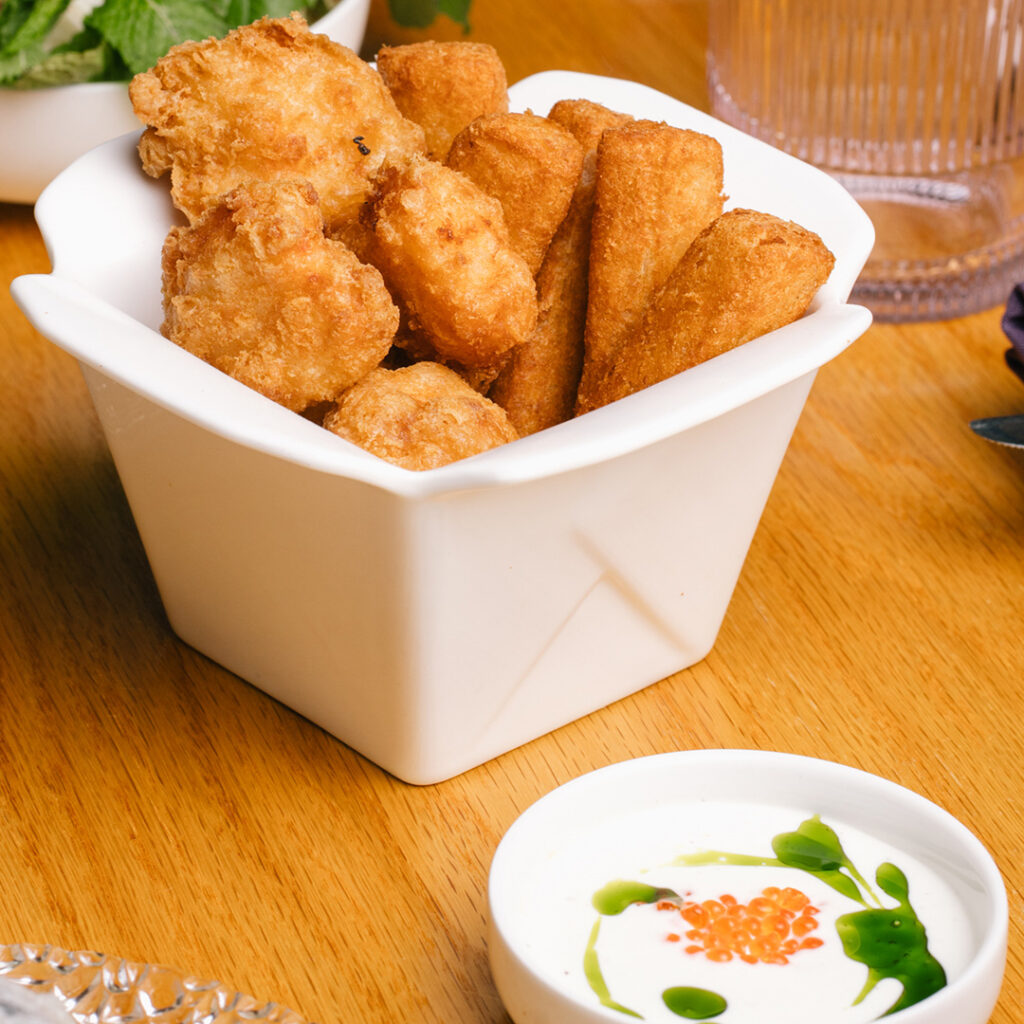 Yellowtail, passion fruit nuóc chấm, celery, radish, green oil. 3 pc per order.